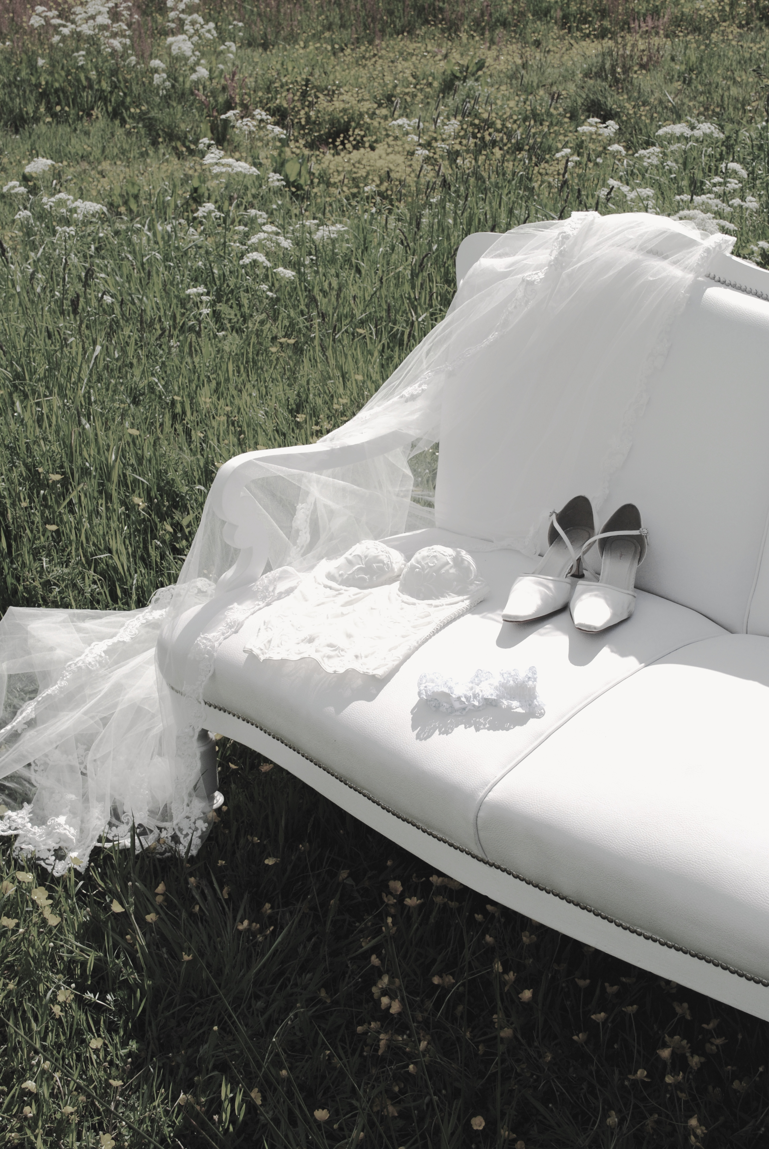 trouwbankje, bruid, aankleden, sluier