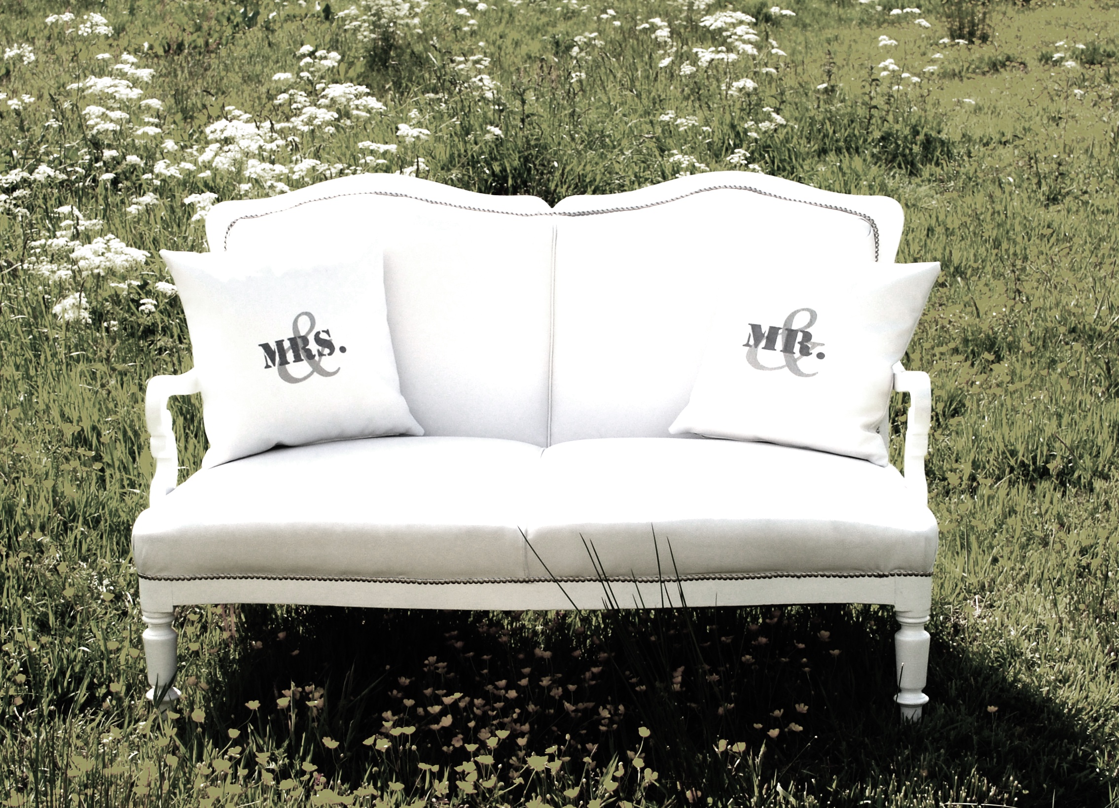 trouwbankje, weiland, veld, trouwen